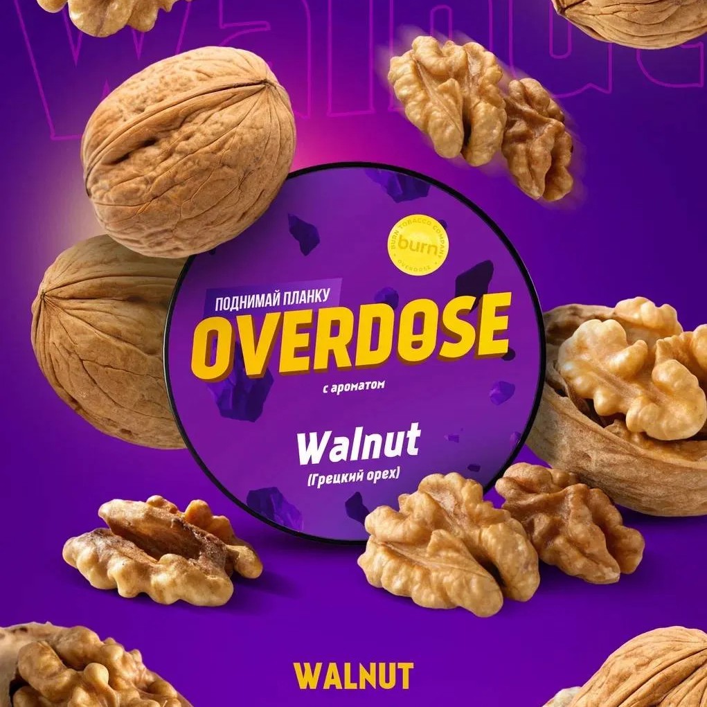 OVERDOSE - Walnut - Благородный орех с терпкой сладостью. Свежий грецкий орех с плотной текстурой и насыщенным ароматом. Тёплый вкус с тонкими древесными нотками.